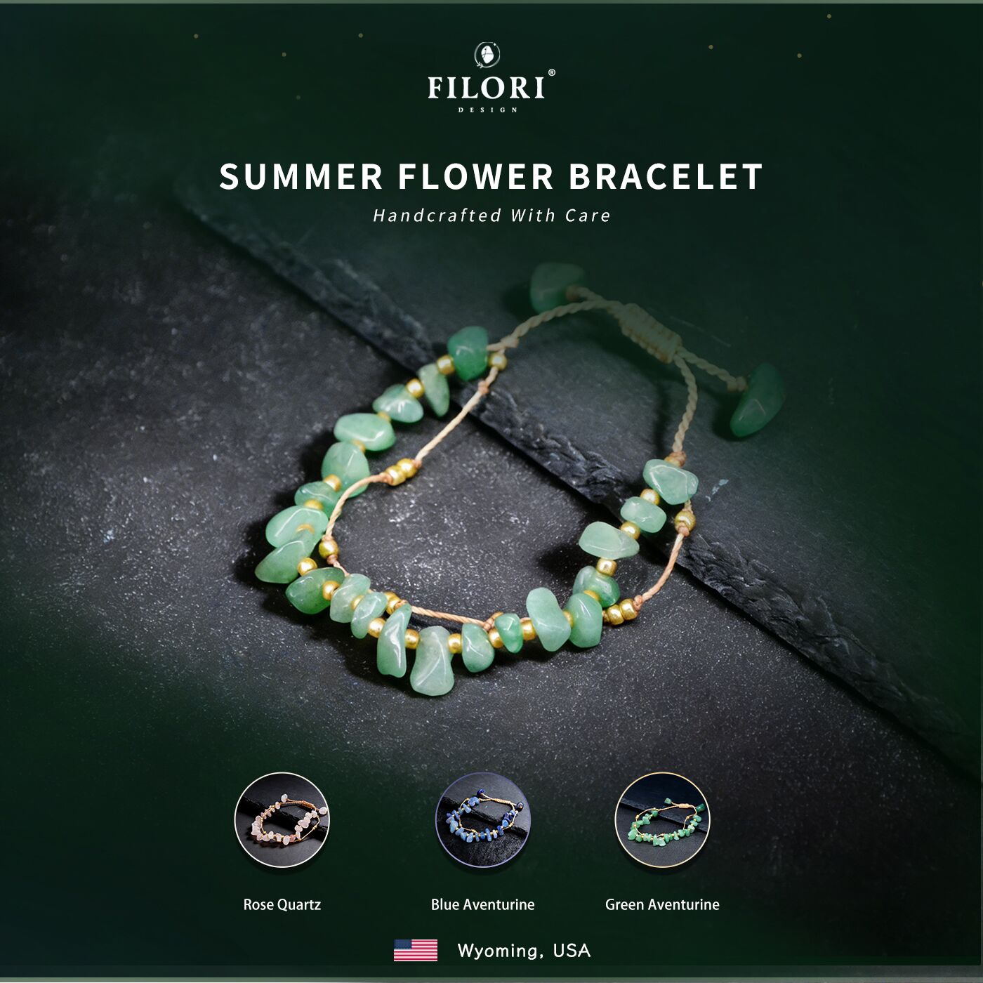 Origin: Designed in Wyoming, USA Crafted in both the U.S. and trusted overseas studios 30-Day Money-Back Guarantee Each Summer Flower Bracelet is truly one-of-a-kind talisman.