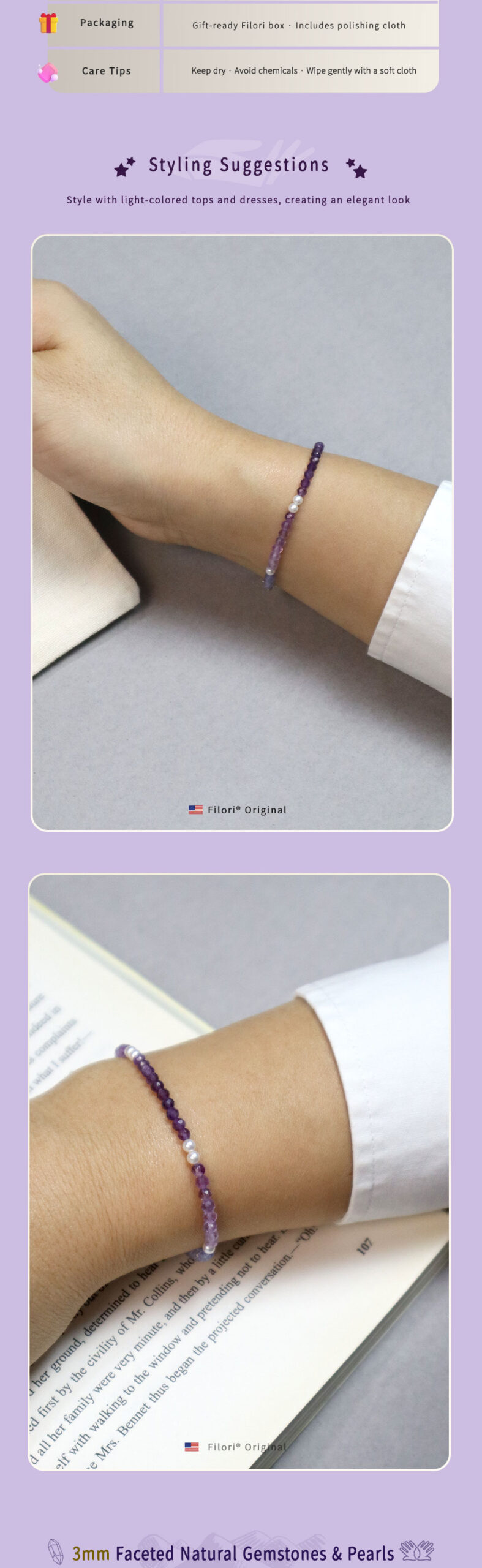 ✦ Aurora Collection ✦ Crystal & Pearl Gradient Necklaces This handcrafted necklace features ultra-dainty 3.5mm faceted gemstones