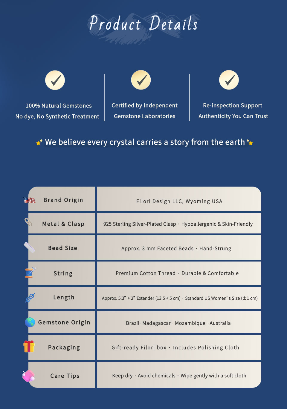 Origin: Designed in Wyoming, USA. Crafted in both the U.S. and trusted overseas studios. 30-Day Money-Back Guarantee. Each Crystal Gradient Necklace is a one-of-a-kind talisman.