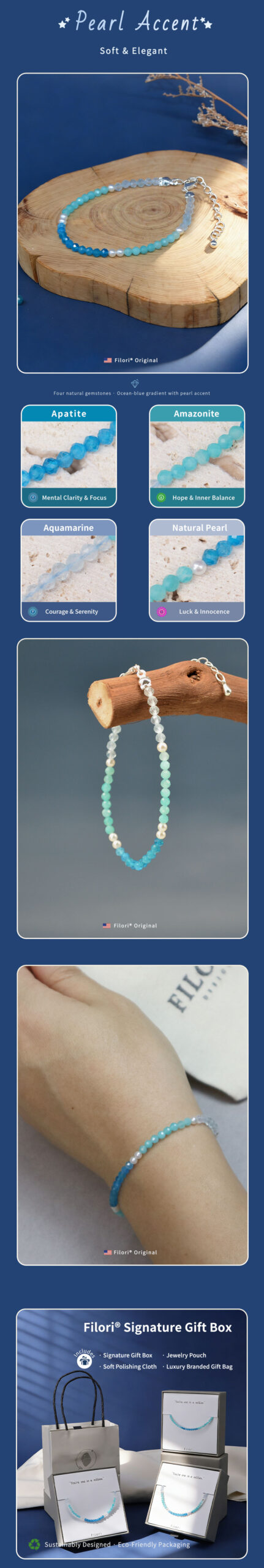 ✦ Aurora Collection ✦ Crystal & Pearl Gradient Necklaces This handcrafted necklace features ultra-dainty 3.5mm faceted gemstones