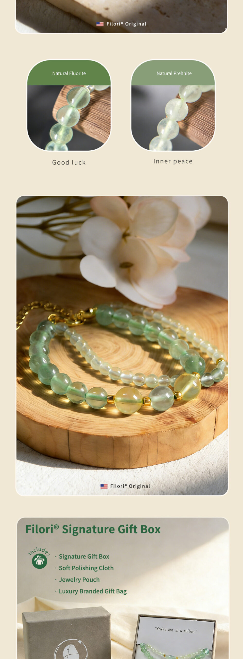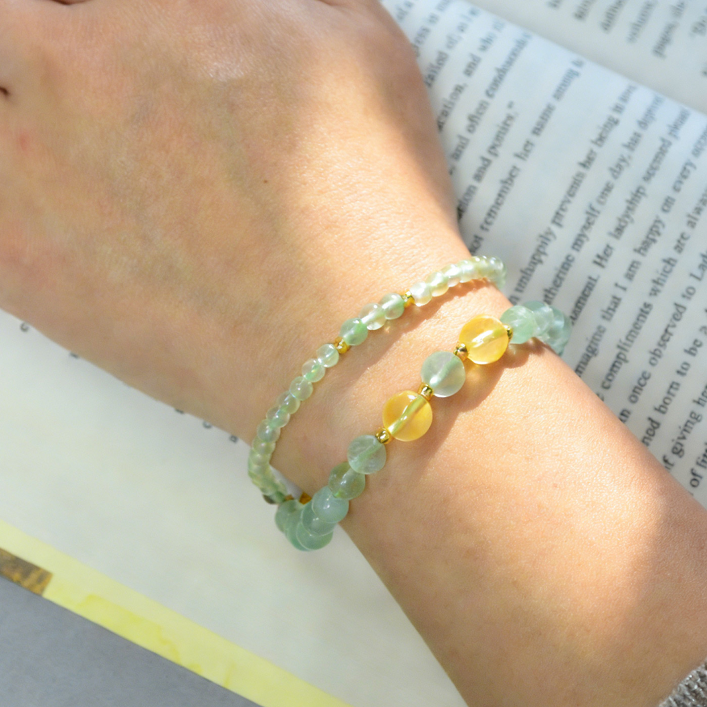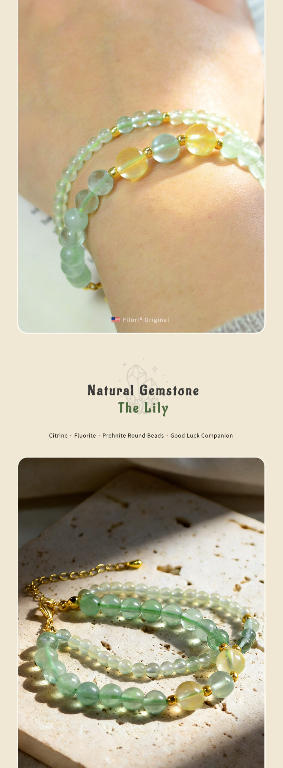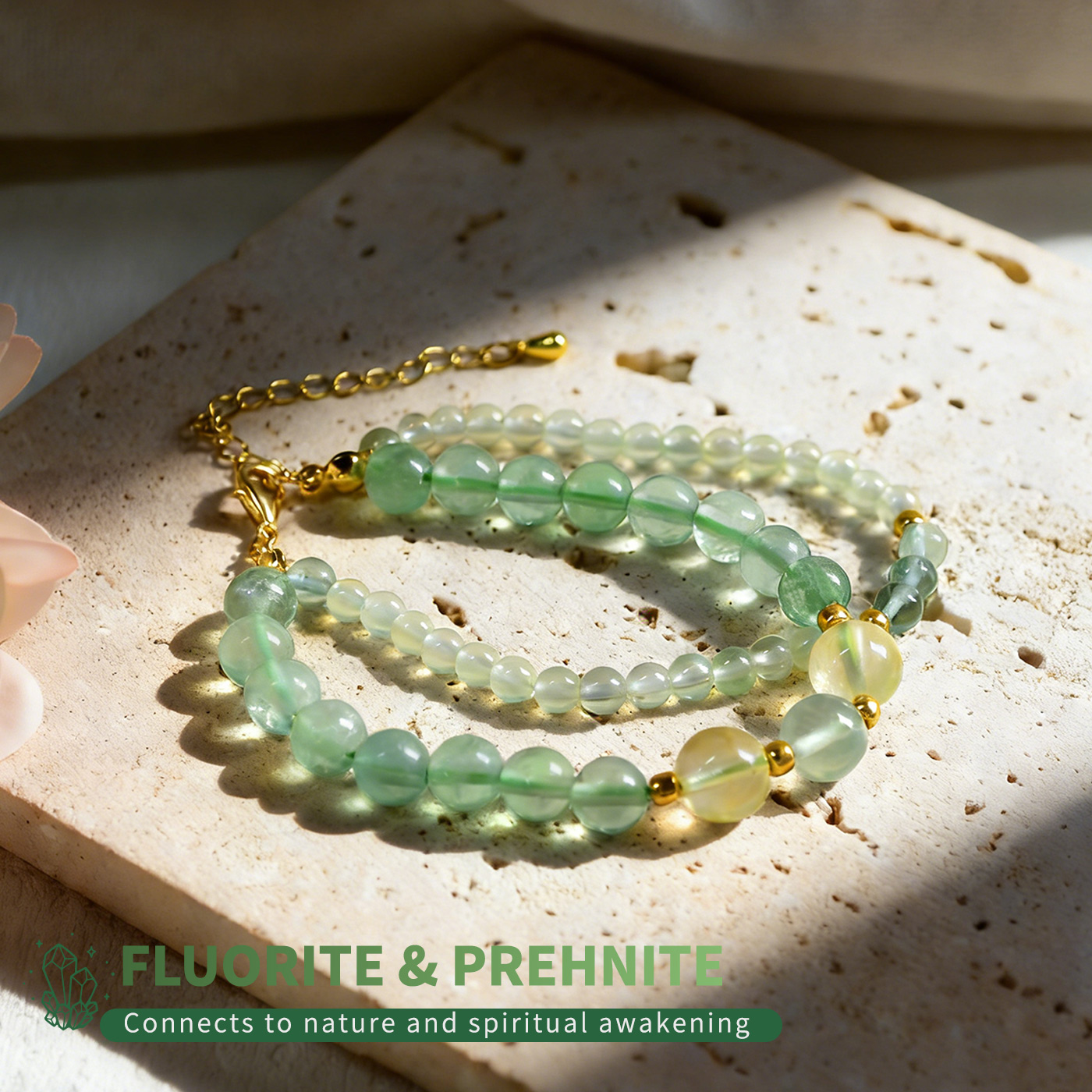 • Green Fluorite: Joy · Passion · Creative Flow • Yellow Carnelian: Confidence · Motivation · Vitality