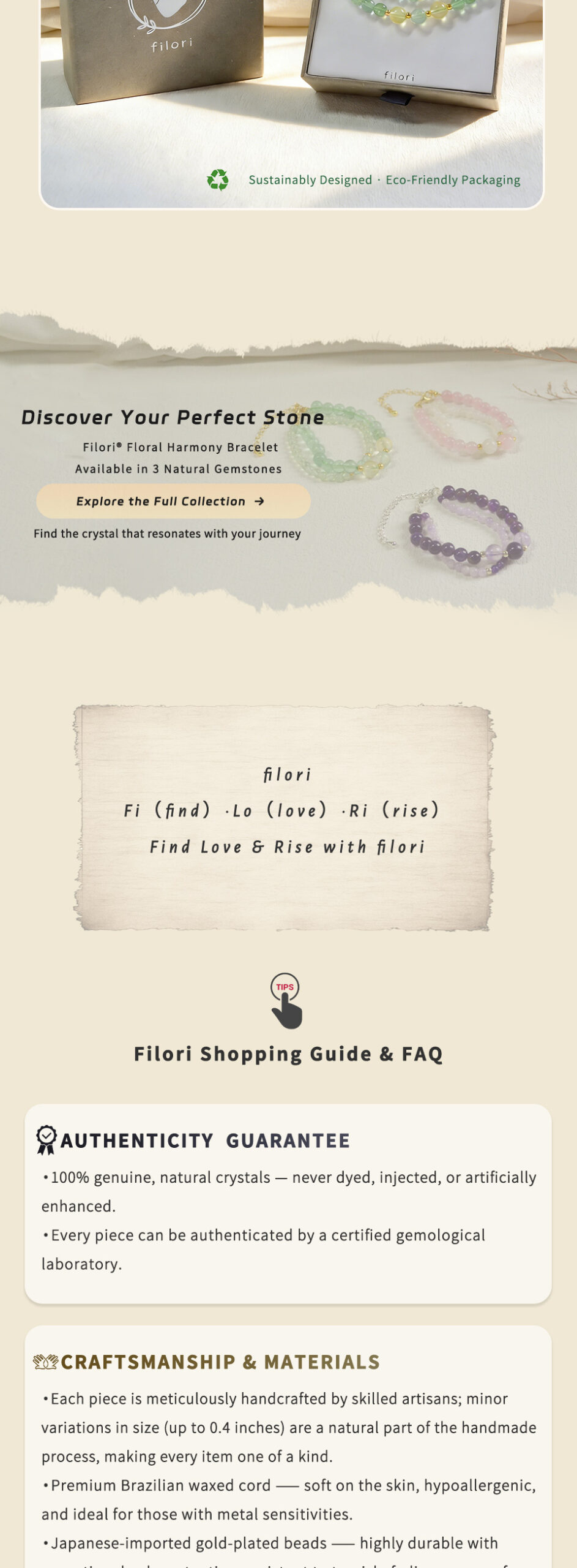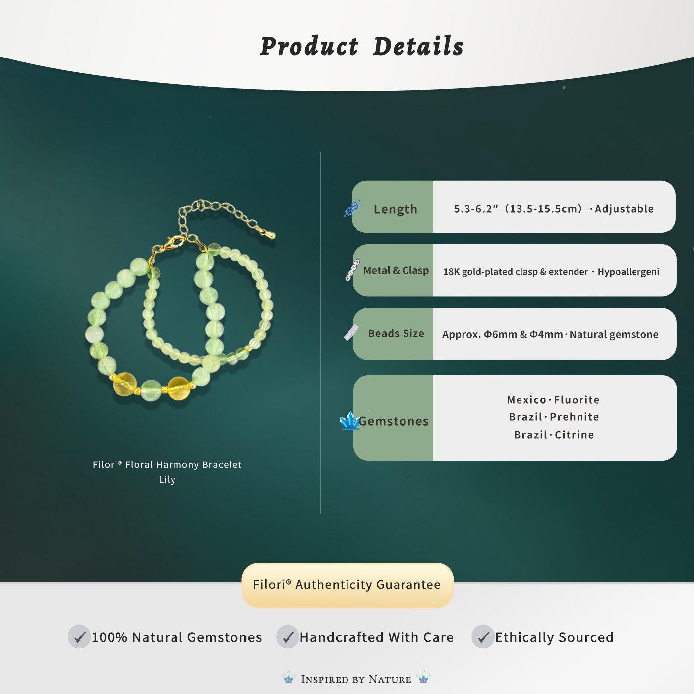 ✧ Material:100% Natural Crystal. ✧ Beads: Round Beads (6mm & 4mm). ✧ Clasp:925 sterling silver or 18K gold-plated. ✧ Adjustable Length:5.3″+ 2″ extender (13.5cm + 5cm). ✧ Packaging: Comes with a gift box and floral inspiration card.