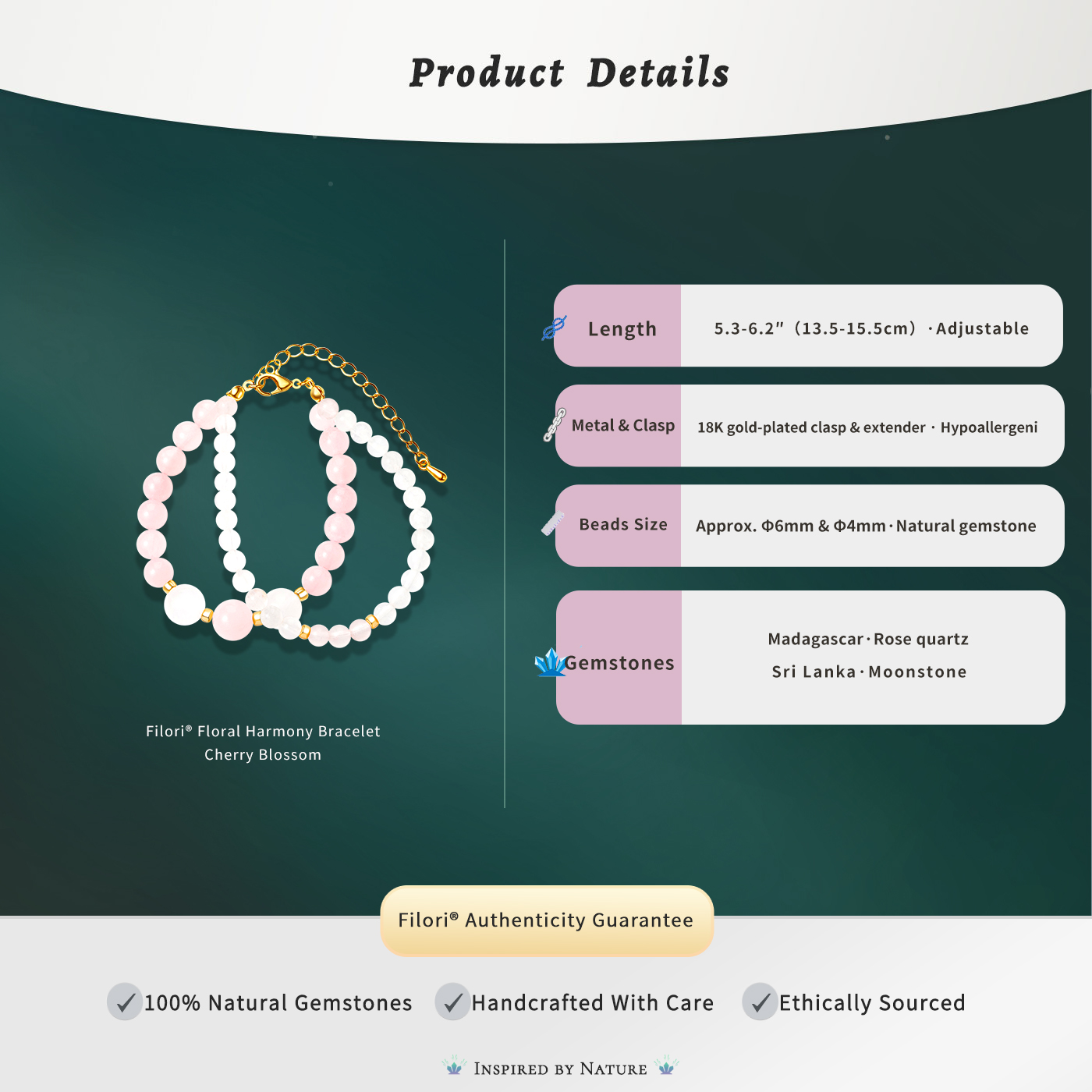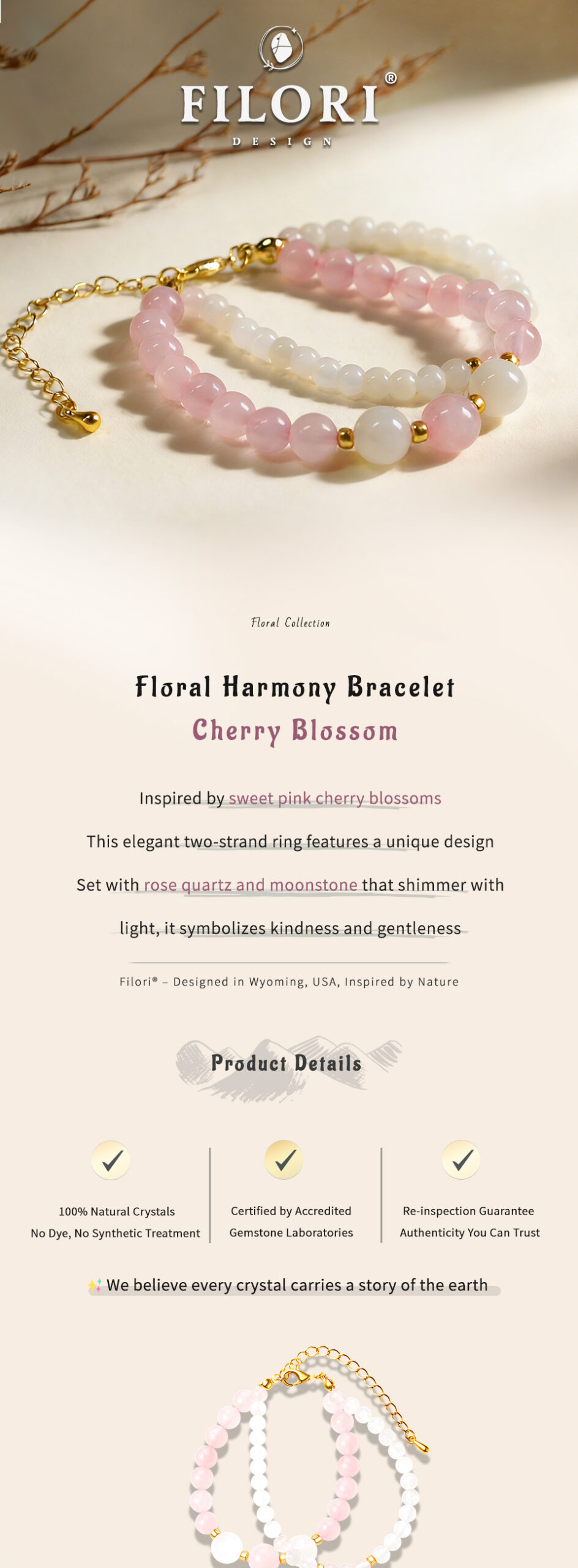 Each Floral Harmony Bracelet is a one-of-a-kind talisman.