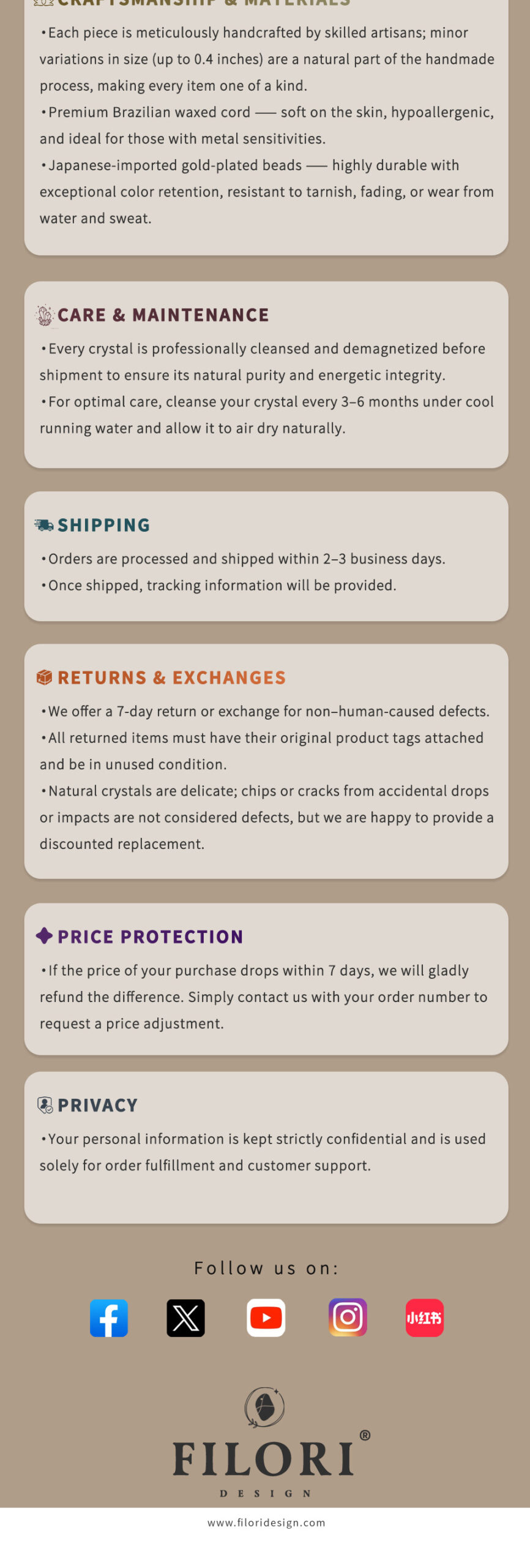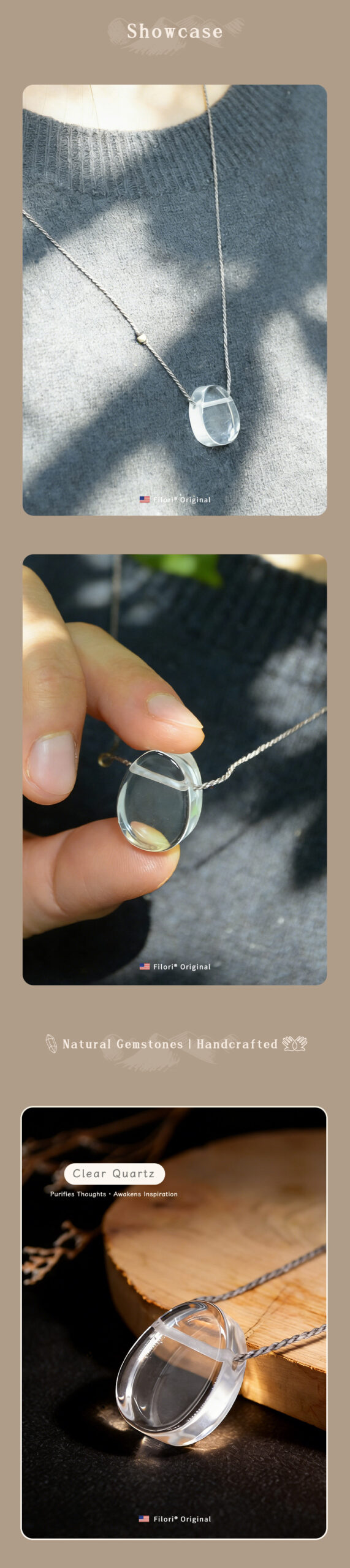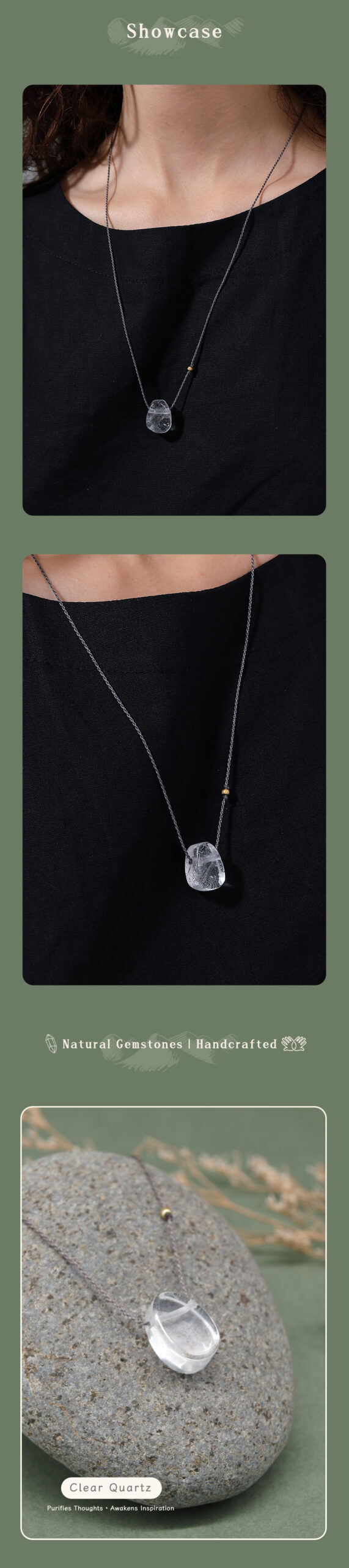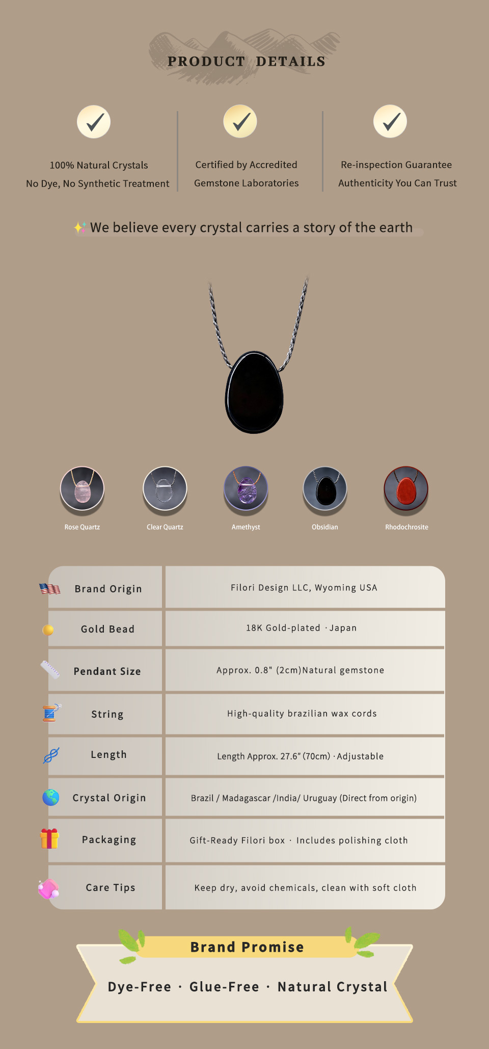 ✧ Material:100% natural Crystal (approx. 1.5–2.0 cm per pendant) ✧ Accent Bead:18 K gold-plated (Japan) ✧ Cord: hand-braided, Premium Brazilian wax cord ✧ Adjustable Length: Up to 27.6″ (70 cm), sliding knot design ✧ Packaging: Gift box & gemstone meaning card included