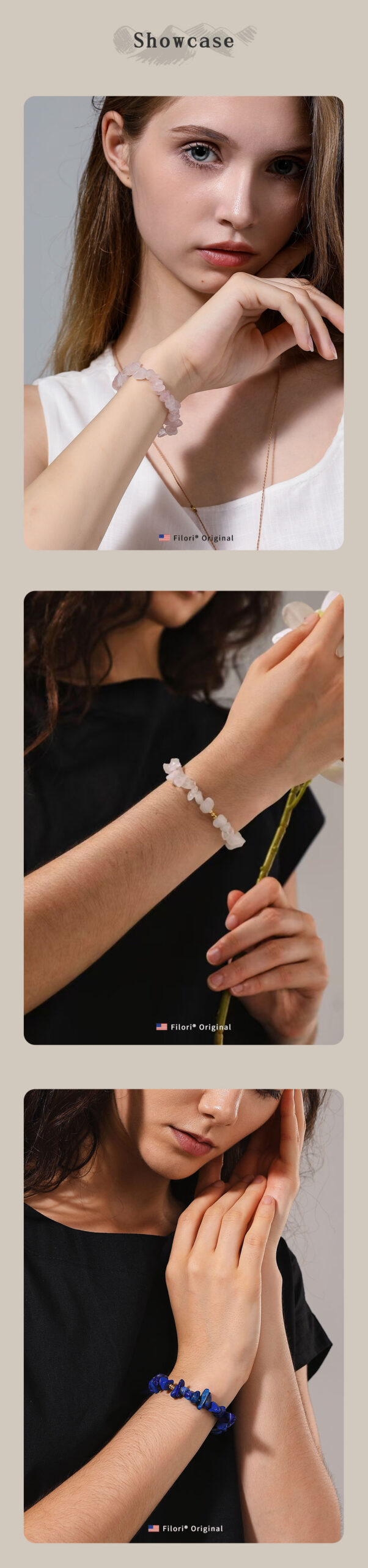 ✧Material: Hand-selected,100% natural tumbled gemstone chips ✧Accents: 18K gold-plated beads ✧Cord: Premium stretch cord for a comfortable, adjustable fit ✧Bracelet Size: Approx. 6.9″ (17.5 cm) fits most wrists ✧Gemstone Chip Size: Approx. 0.2″–0.4″ (0.5–1 cm)