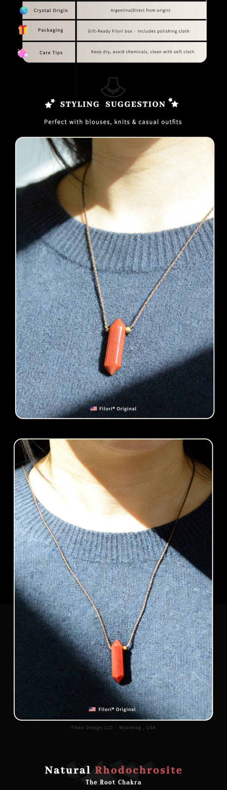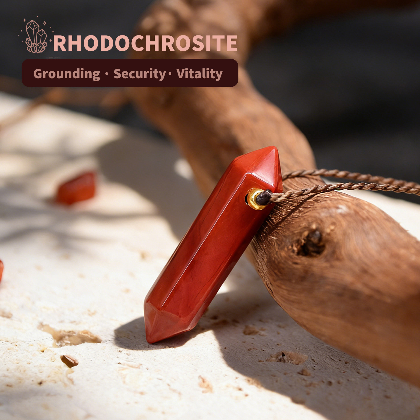 Hexagonal Prism Crystal Pendant – Natural Rhodochrosite