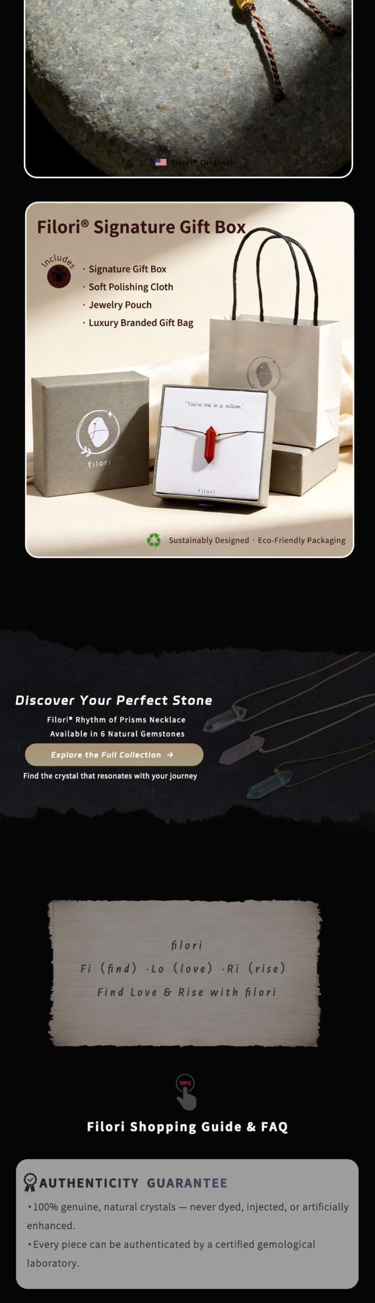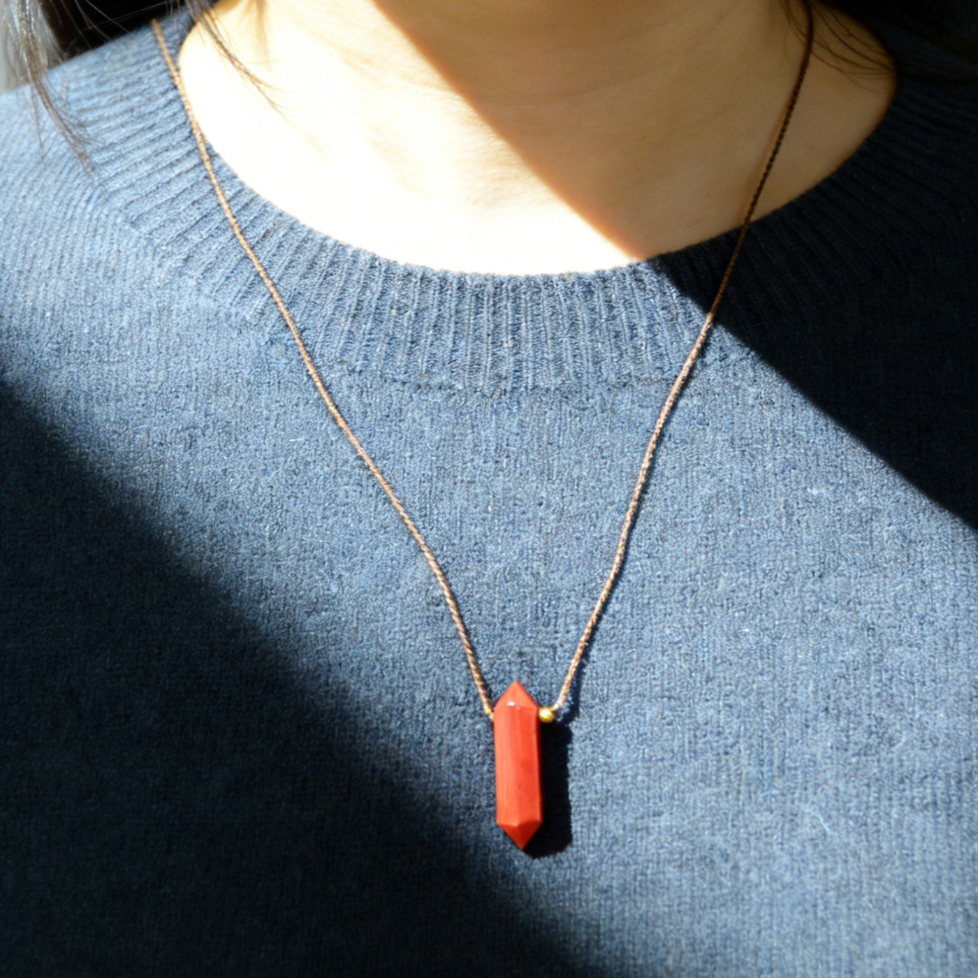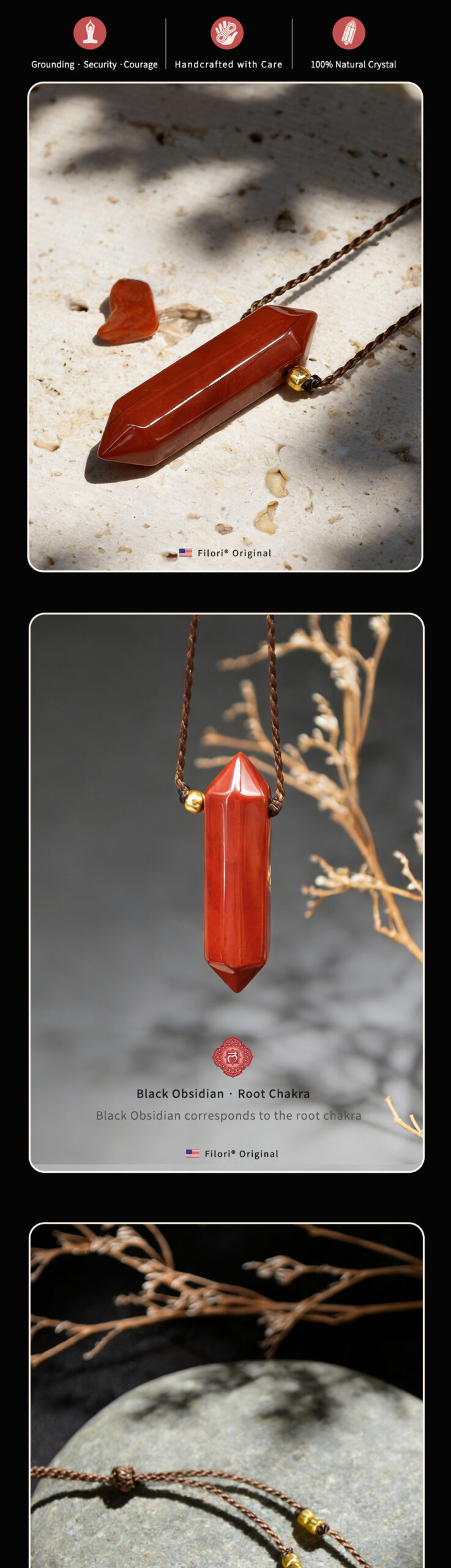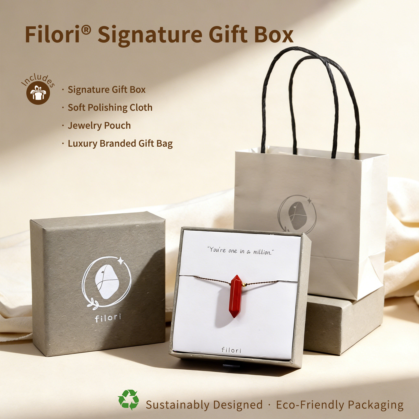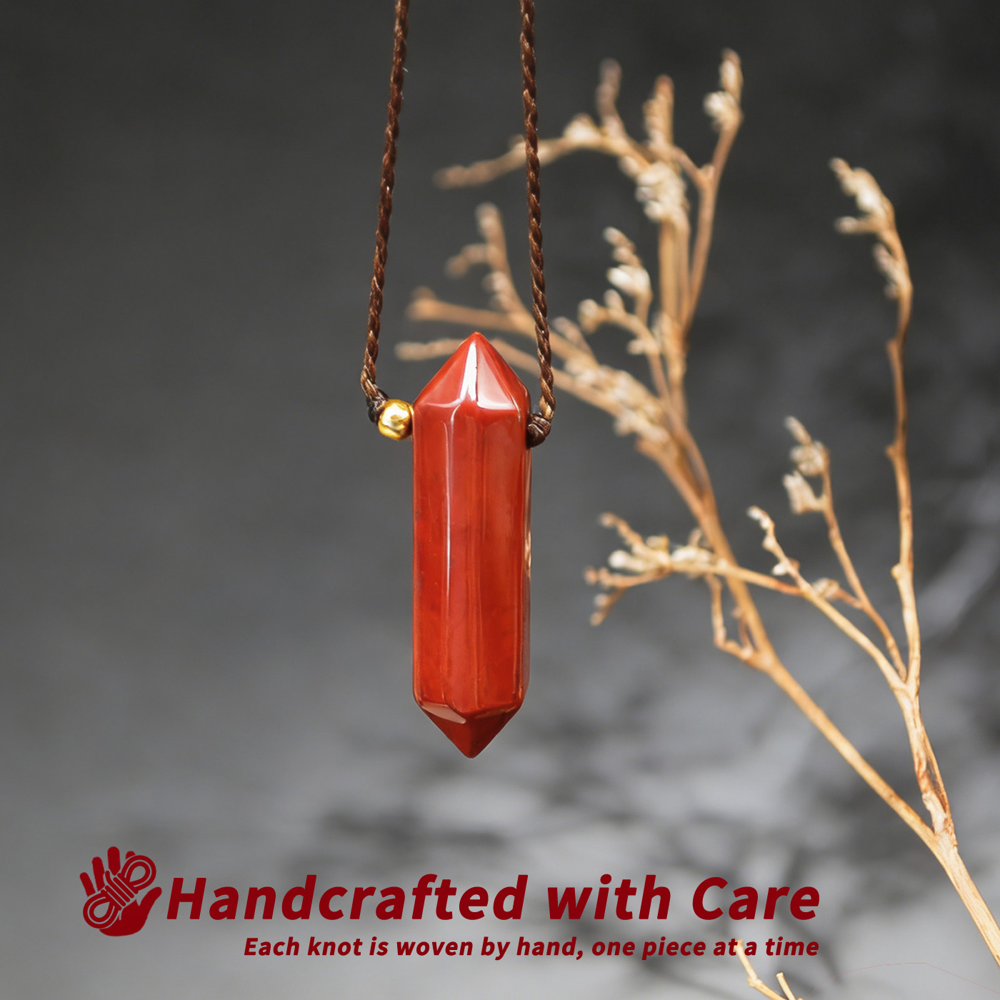 ✧ Material: 100% natural crystal, approx. 1″× 0.3″ (2.7 × 0.7 cm) ✧ Accent Beads:18 K gold-plated (Japan) ✧ Cord: Premium Brazilian wax cord, hand-braided ✧ Adjustable Length: Up to 31.5″ (80 cm), with sliding knot ✧ Packaging: Comes with a gift box and energy meaning card