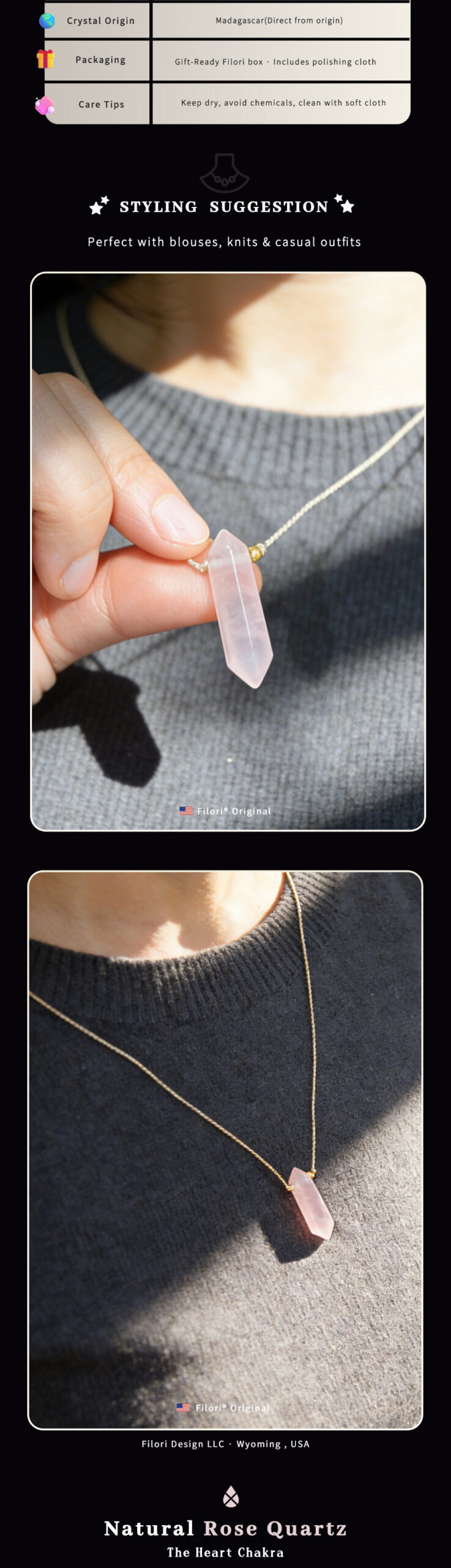 Origin: Designed in Wyoming, USA Crafted in both the U.S. and trusted overseas studios 30-Day Money-Back Guarantee Each Prisms Necklaces is a one-of-a-kind talisman.