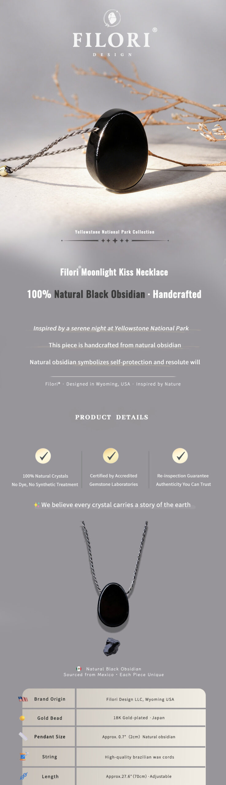FILORI® Moonlight Kiss Necklace Inspired by the serene of Yellowstone nights