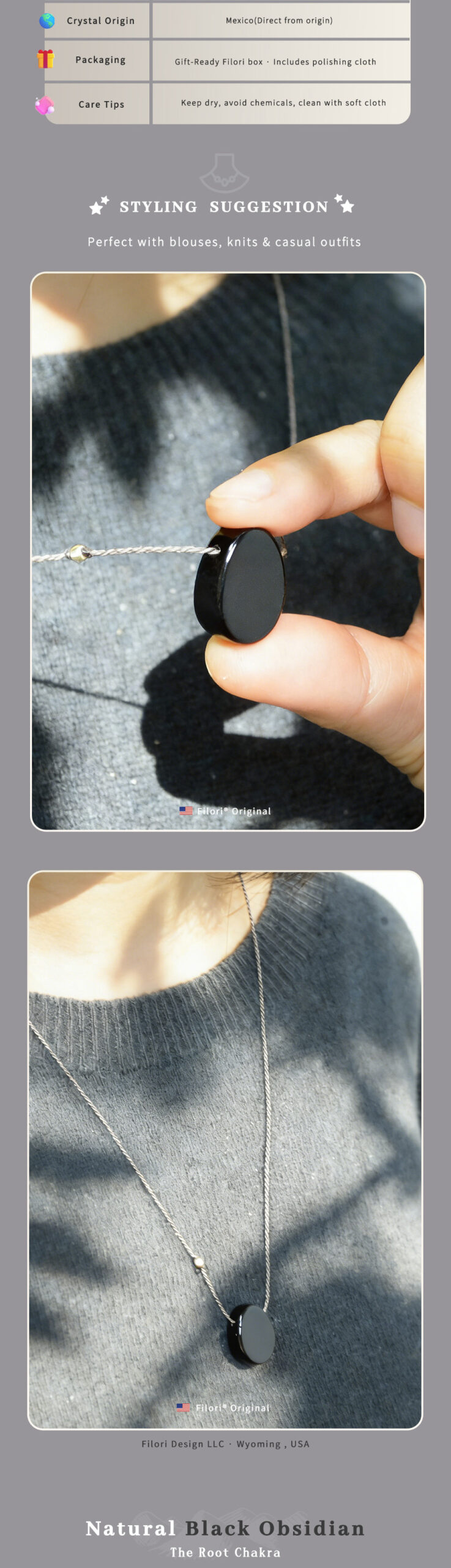Origin: Designed in Wyoming, USA Crafted in both the U.S. and trusted overseas studios 30-Day Money-Back Guarantee Each Moonlight Kiss Necklace is one-of-a-kind talisman.