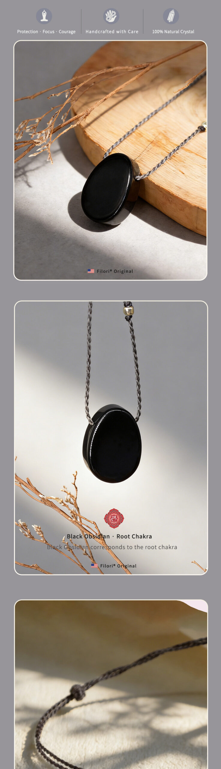 • Obsidian: Protection · Strength · Grounding