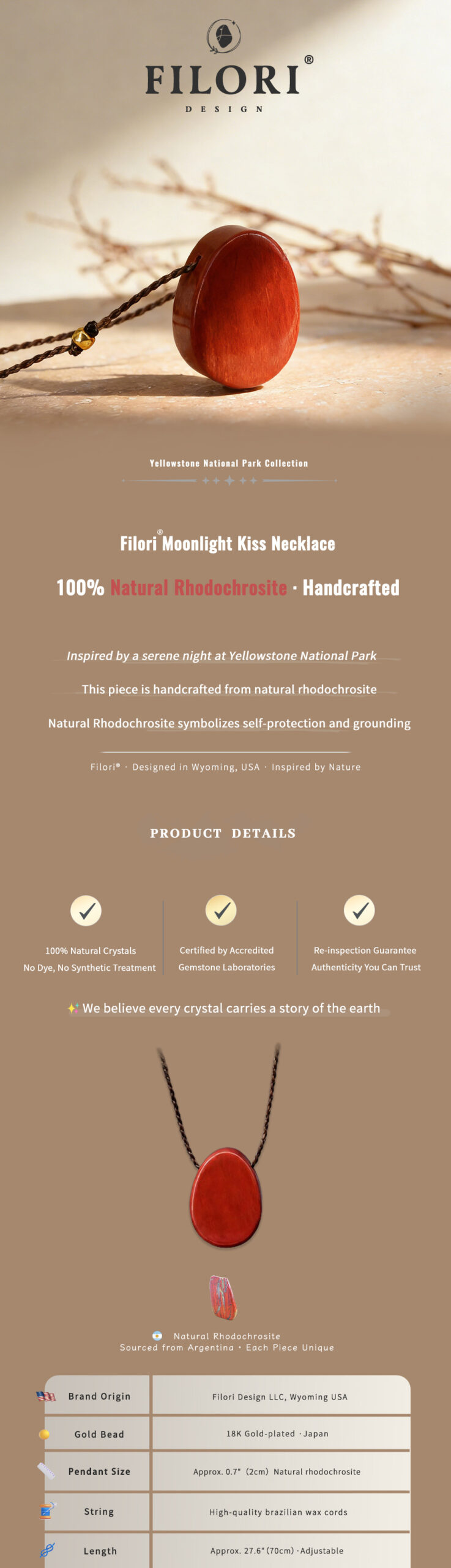Origin: Designed in Wyoming, USA Crafted in both the U.S. and trusted overseas studios 30-Day Money-Back Guarantee Each Moonlight Kiss Necklace is one-of-a-kind talisman.