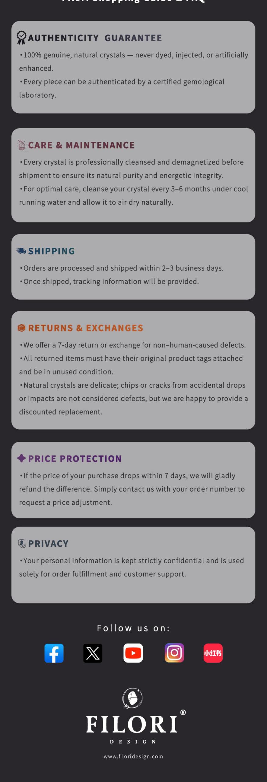 Origin: Designed in Wyoming, USA Crafted in both the U.S. and trusted overseas studios 30-Day Money-Back Guarantee Each Crystal stone is a one-of-a-kind talisman.