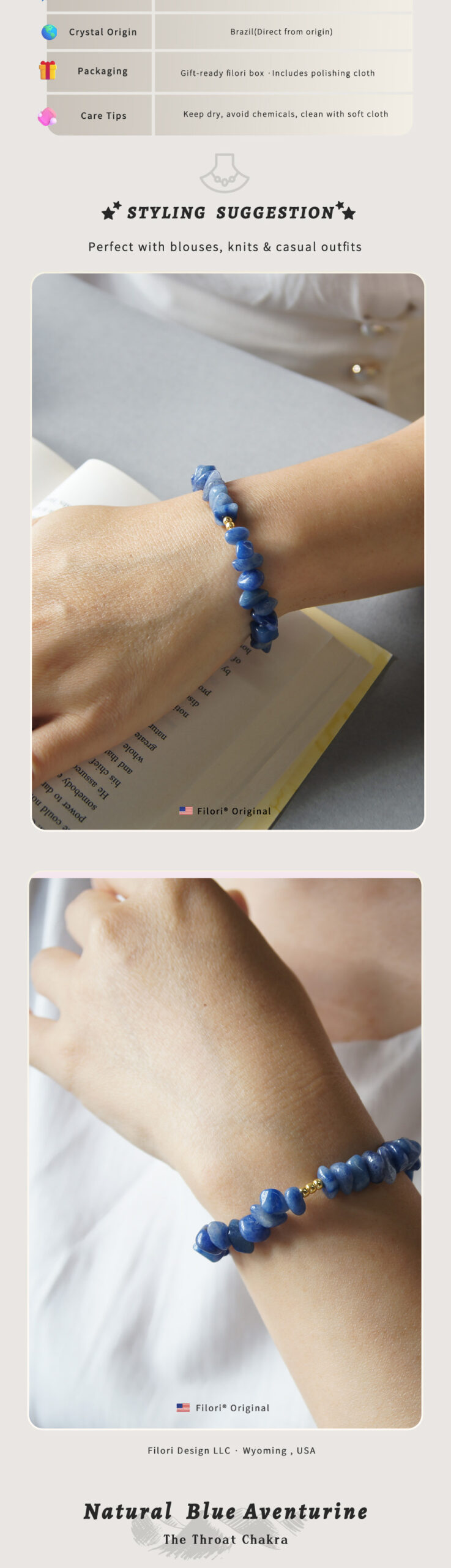 ✧Material: Hand-selected,100% natural tumbled gemstone chips ✧Accents: 18K gold-plated beads ✧Cord: Premium stretch cord for a comfortable, adjustable fit ✧Bracelet Size: Approx. 6.9″ (17.5 cm) fits most wrists ✧Gemstone Chip Size: Approx. 0.2″–0.4″ (0.5–1 cm) Origin: Designed in Wyoming, USA Crafted in both the U.S. and trusted overseas studios 30-Day Money-Back Guarantee