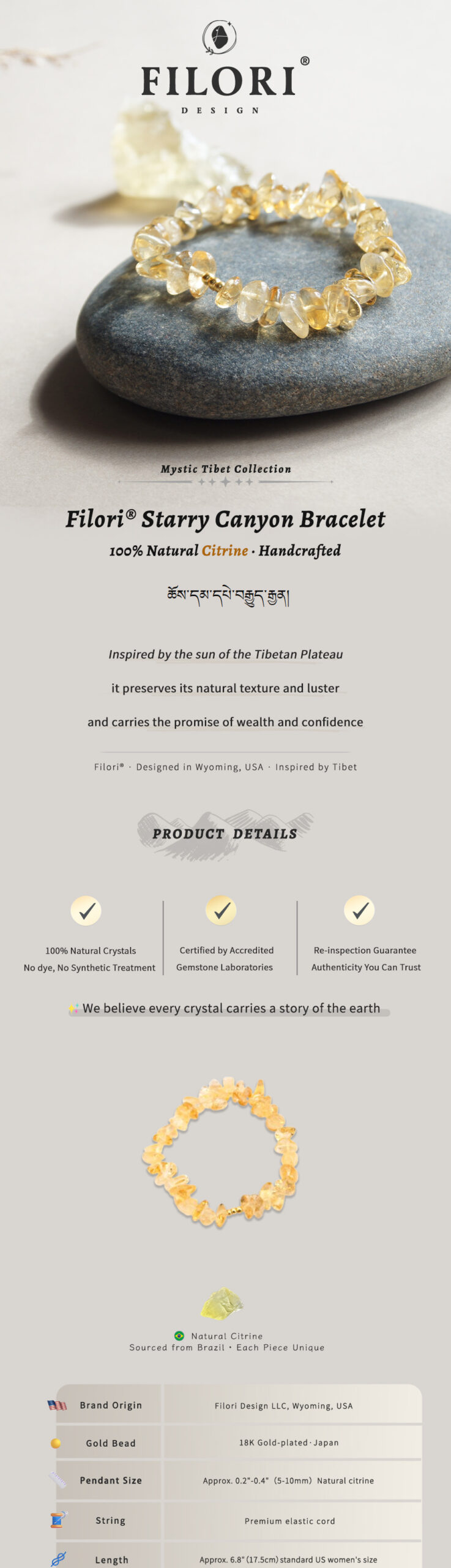 Origin: Designed in Wyoming, USA Crafted in both the U.S. and trusted overseas studios 30-Day Money-Back Guarantee Each Peak Pure Multi-Nature Crystal Stretch Bracelet is a one-of-a-kind talisman.