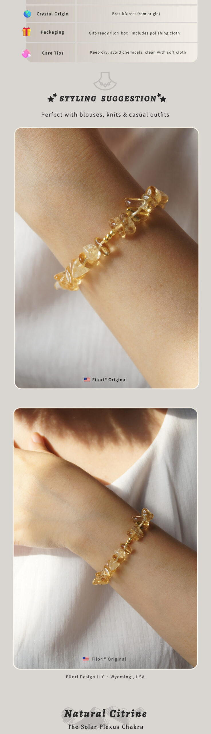 ✧Material: Hand-selected,100% natural tumbled gemstone chips ✧Accents: 18K gold-plated beads ✧Cord: Premium stretch cord for a comfortable, adjustable fit ✧Bracelet Size: Approx. 6.9″ (17.5 cm) fits most wrists ✧Gemstone Chip Size: Approx. 0.2″–0.4″ (0.5–1 cm)