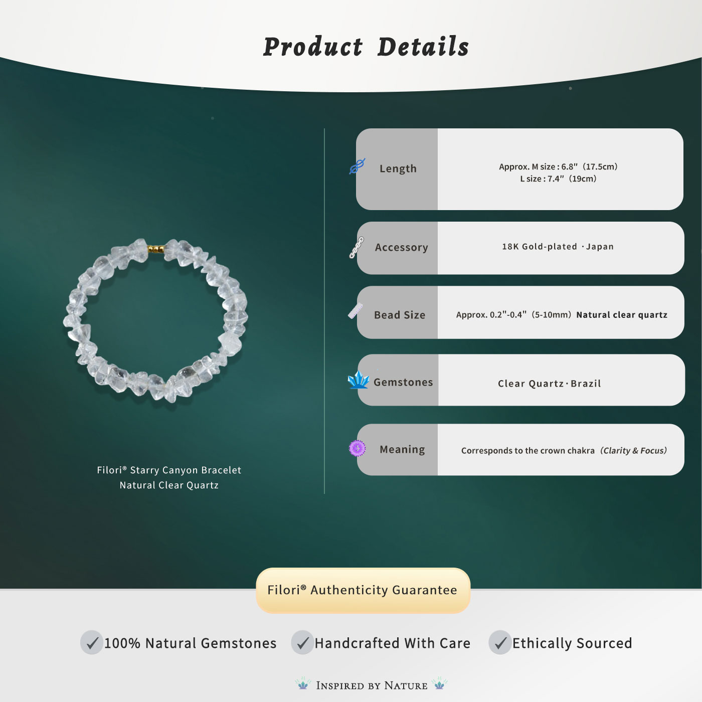 ✧Material: Hand-selected,100% natural tumbled gemstone chips ✧Accents: 18K gold-plated beads ✧Cord: Premium stretch cord for a comfortable, adjustable fit ✧Bracelet Size: Approx. 6.9″ (17.5 cm) fits most wrists ✧Gemstone Chip Size: Approx. 0.2″–0.4″ (0.5–1 cm)