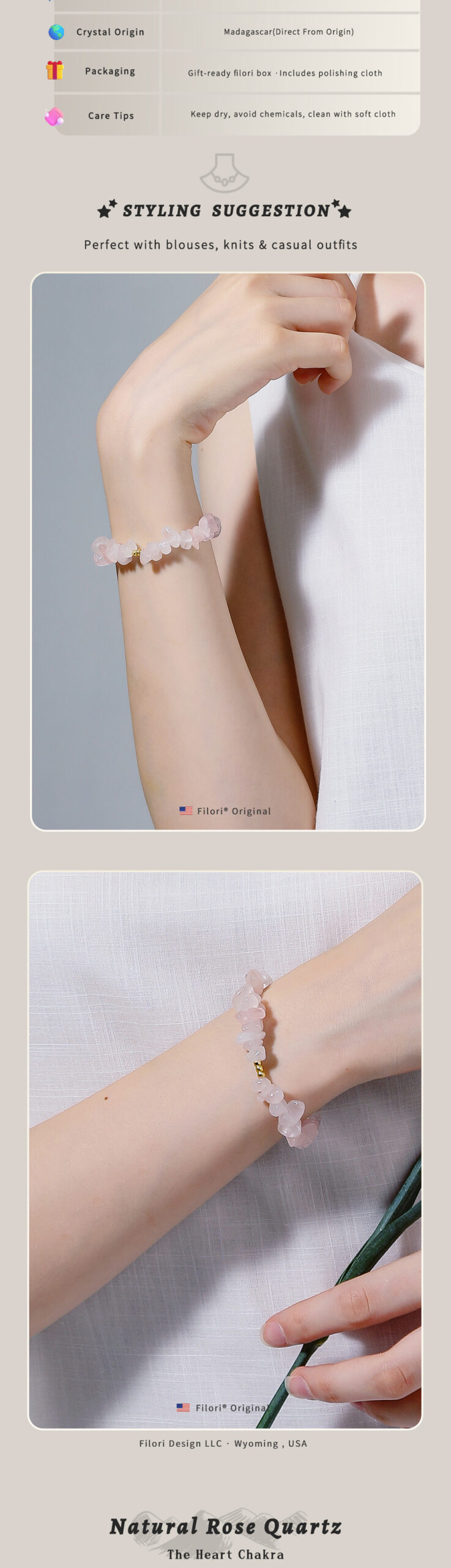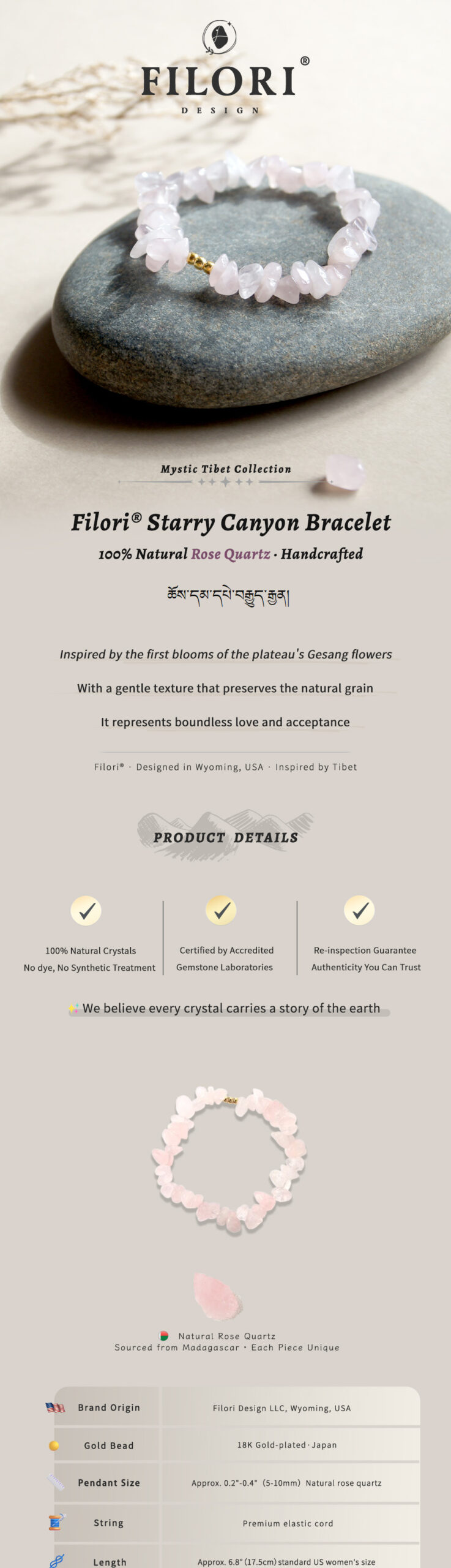 Origin: Designed in Wyoming, USA Crafted in both the U.S. and trusted overseas studios 30-Day Money-Back Guarantee Each Peak Pure Multi-Nature Crystal Stretch Bracelet is a one-of-a-kind talisman.
