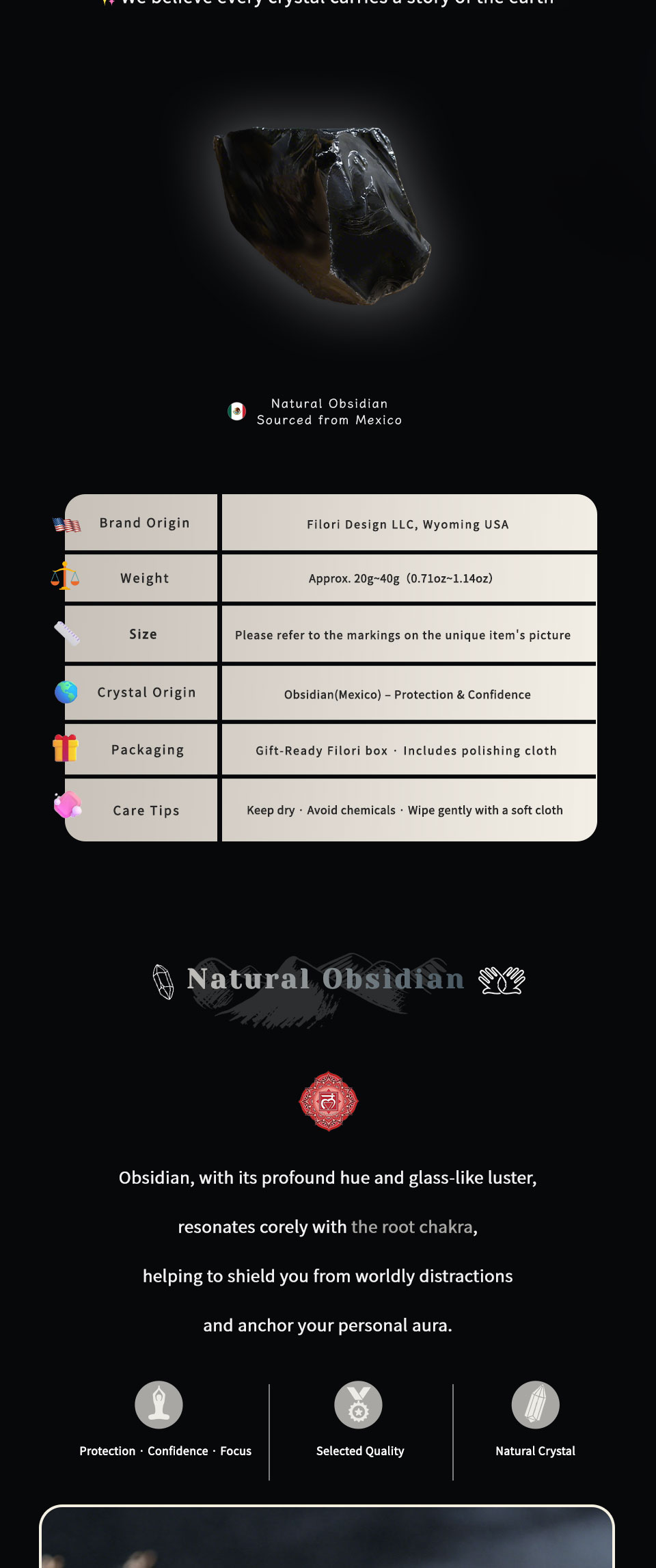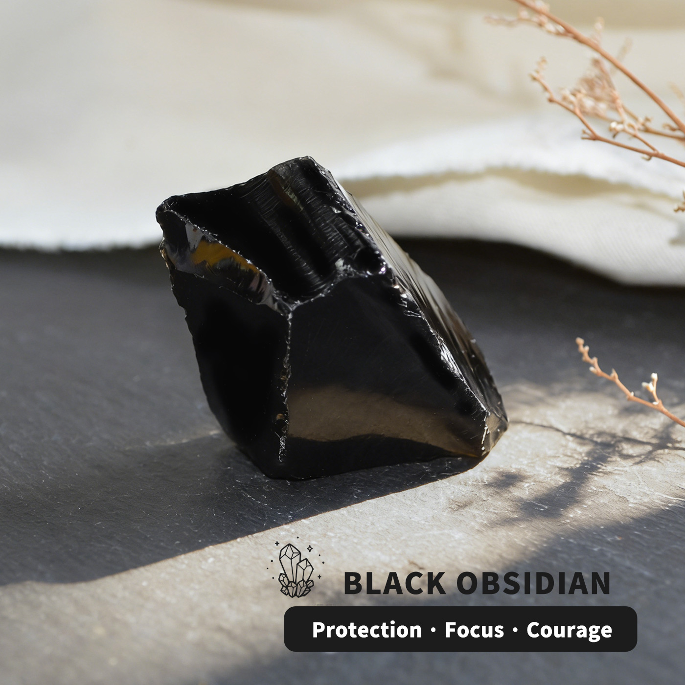 • Black Obsidian: Protection · Focus · Courage