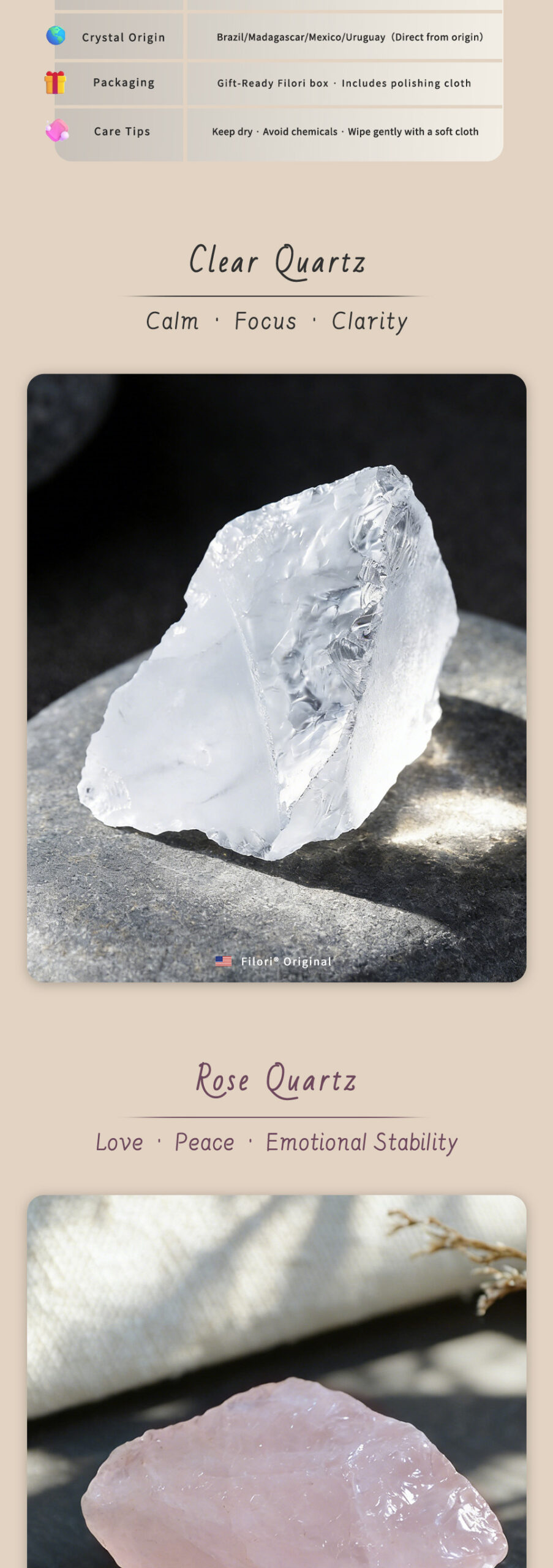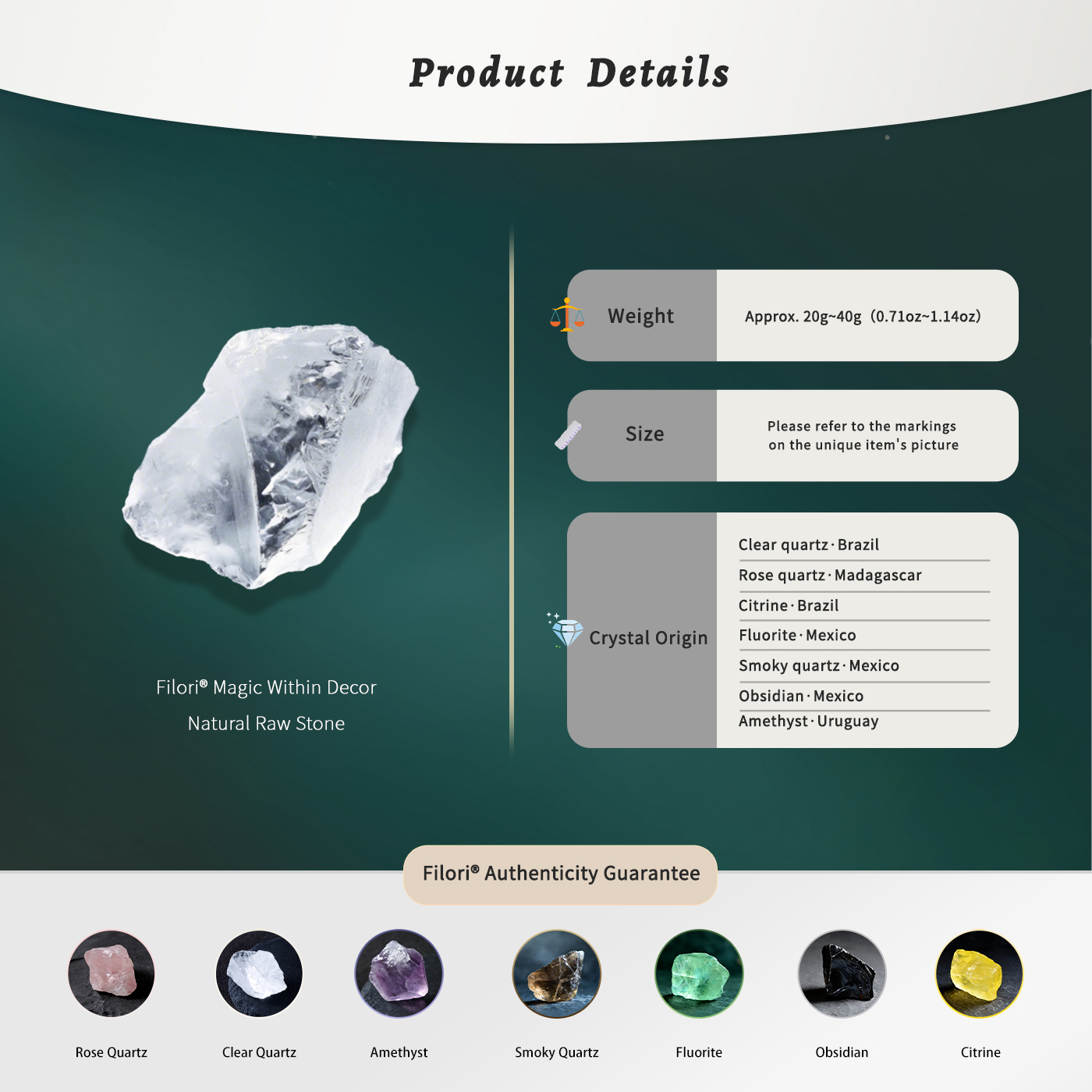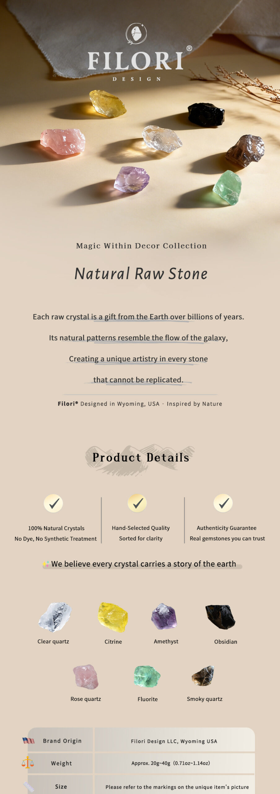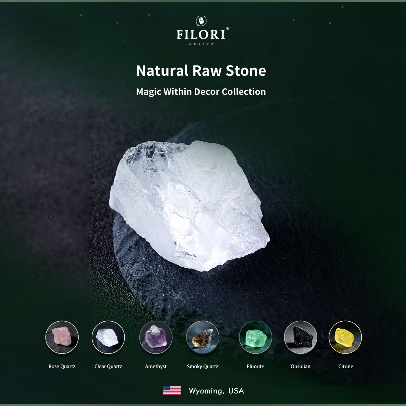 Origin: Designed in Wyoming, USA Crafted in both the U.S. and trusted overseas studios. 30-Day Money-Back Guarantee. Each Raw Quartz Crystal is showcasing one-of-a-kind beauty.