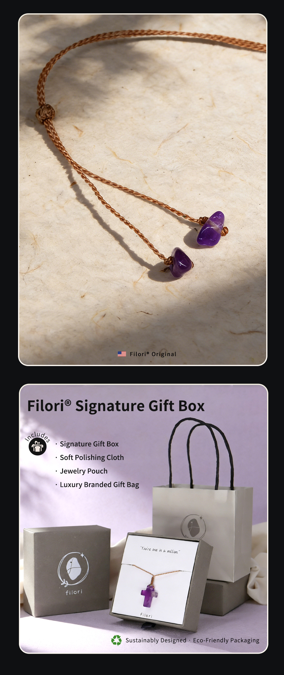 ✧ Material:100% natural crystal, approx. 0.78×0.98″(2 × 2.5 cm) ✧ Accent Bead:18 K gold-plated (Japan) ✧ Cord: Premium Brazilian wax cord, hand-braided ✧ Adjustable Length: Up to 23.6″ (60 cm), sliding knot design ✧ Packaging: Gift box & gemstone meaning card included