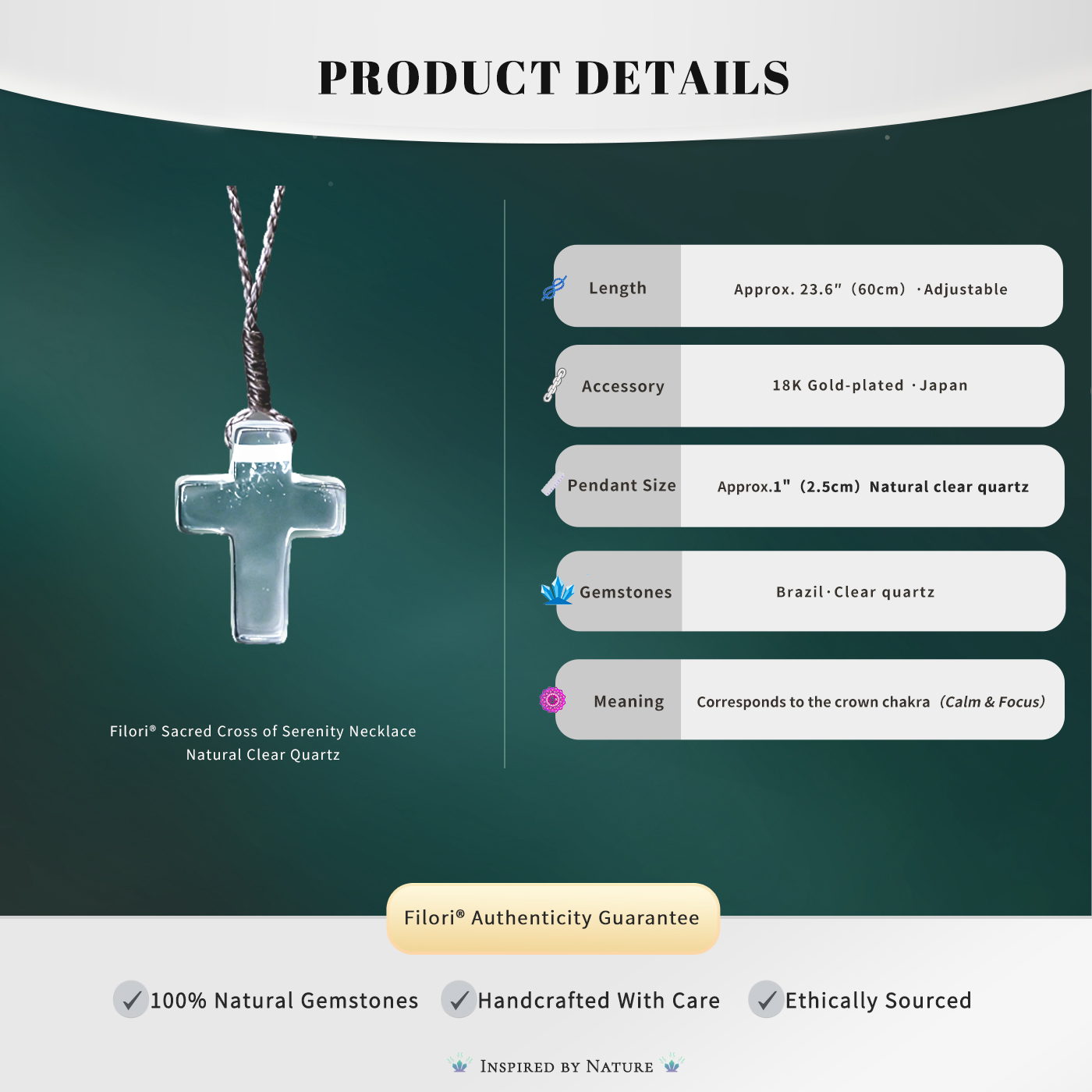 FILORI® Sacred Cross Healing Crystal Necklace