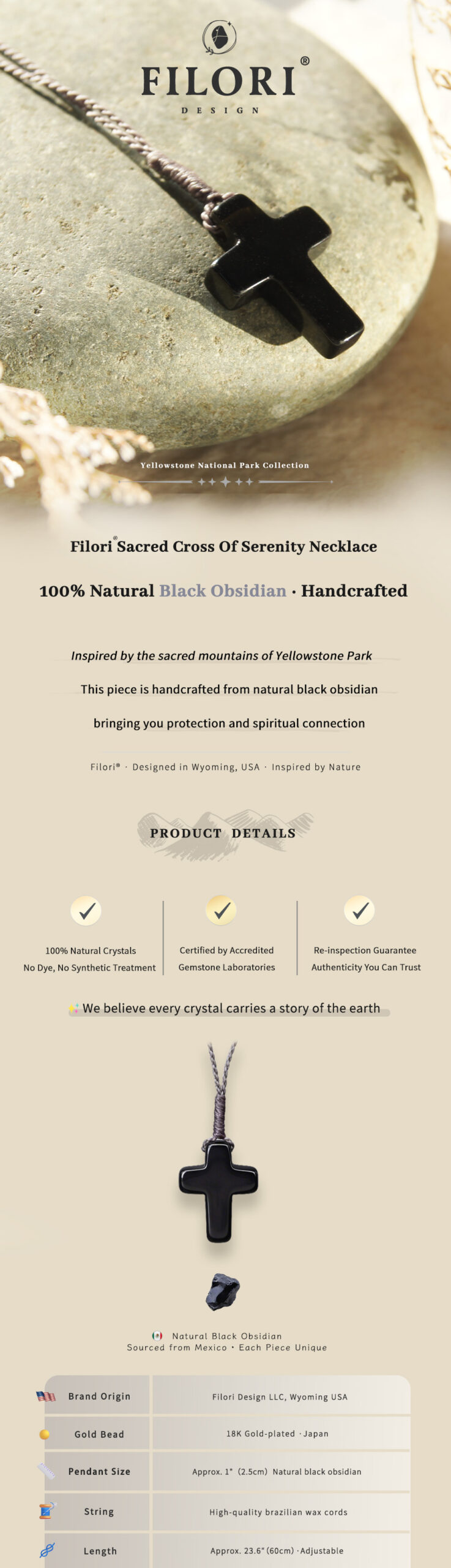 Origin: Designed in Wyoming, USA Crafted in both the U.S. and trusted overseas studios 30-Day Money-Back Guarantee Each Sacred Cross Necklace is truly one-of-a-kind talisman.