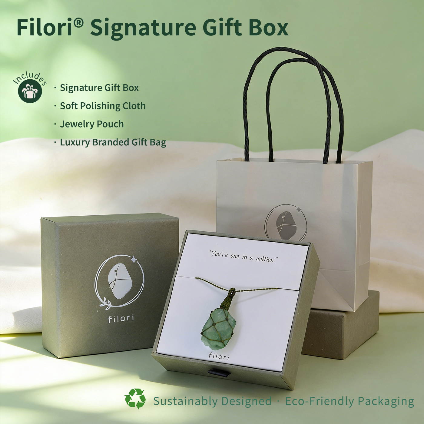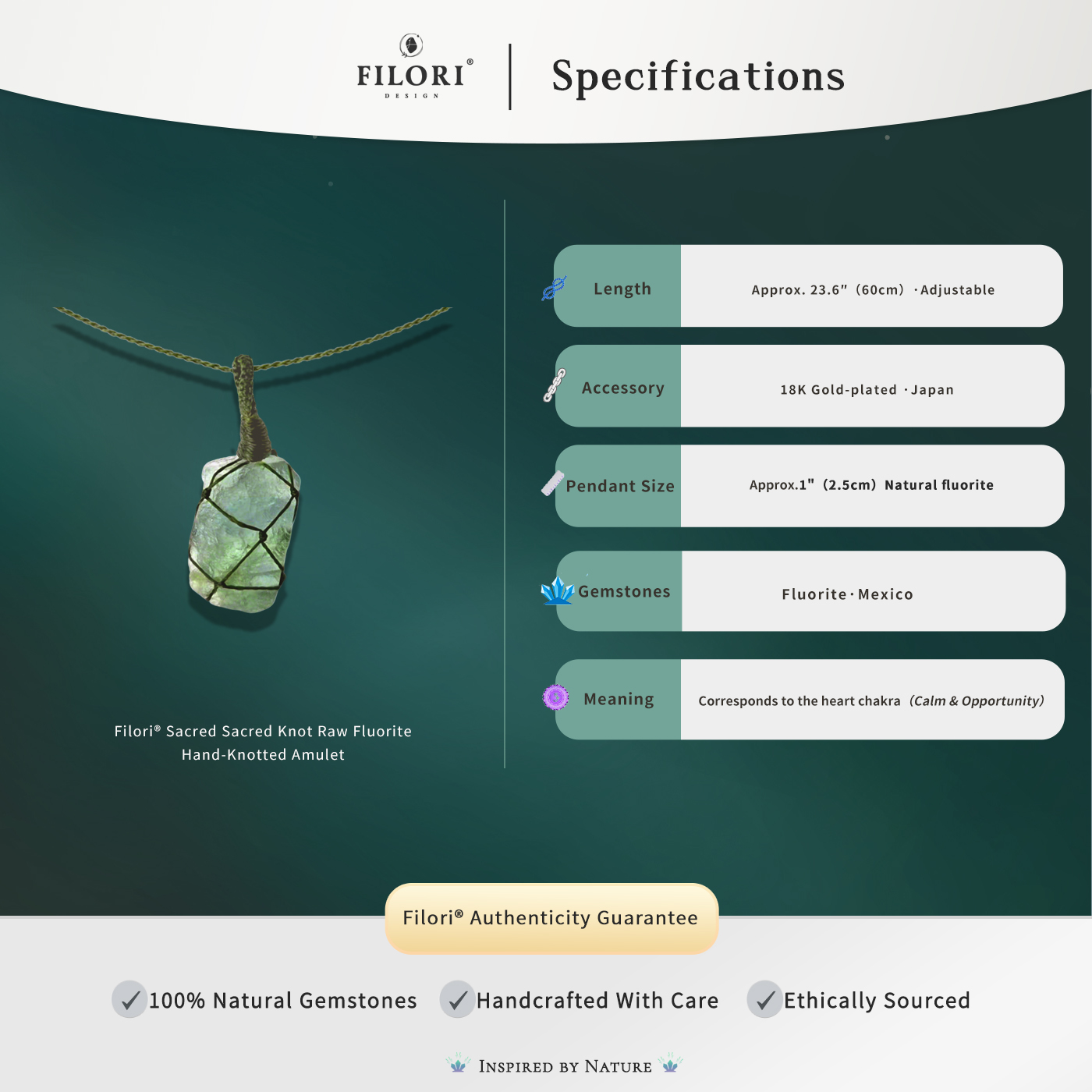 FILORI® Sacred Knot · Green Fluorite Necklace Handcrafted · Inspired by the spring on the Northern Tibet prairie Green Fluorite: Calm · Stress Relief · Opportunity Known to clear the mind, relieve stress