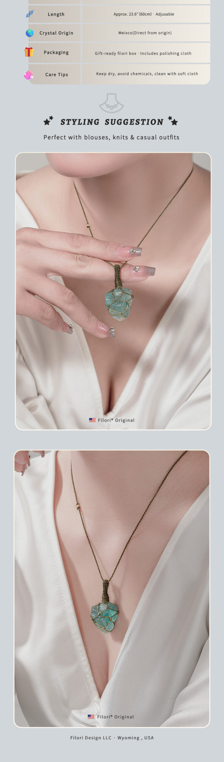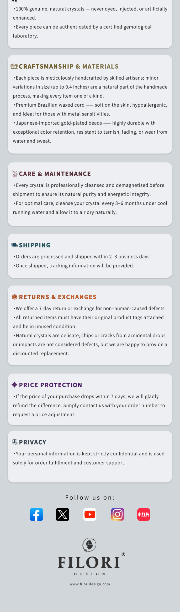 ✧ Material:100% Natural Raw Crystals (size varies slightly) ✧ Accent Beads: Premium 18K Gold-Plated (Japan) ✧ Cord: Hand-braided, premium Brazilian wax cord ✧ Adjustable Length: Up to 23.6″ (60 cm) with sliding knot ✧ Packaging: Comes with a gift box and energy meaning card