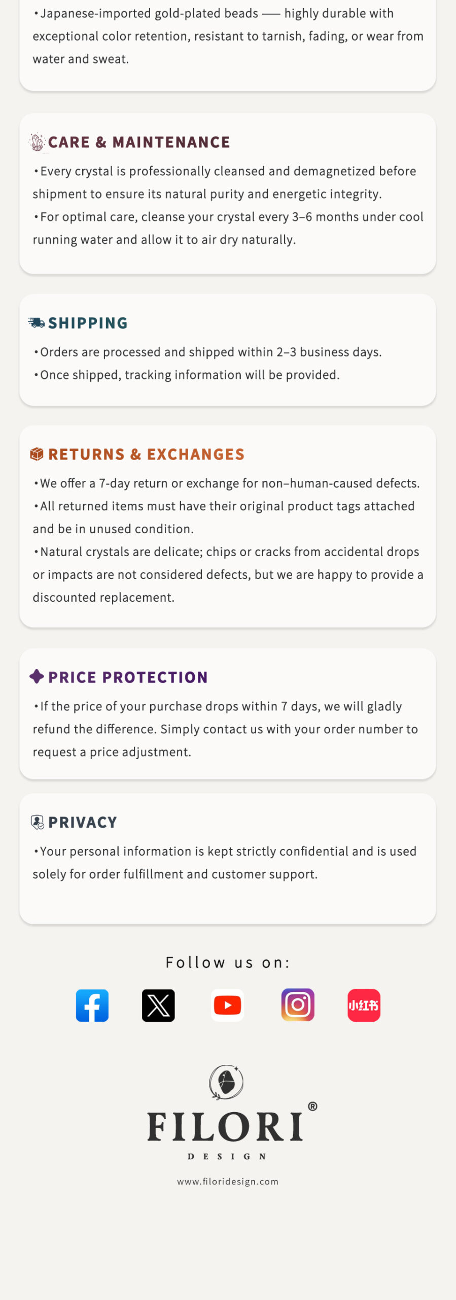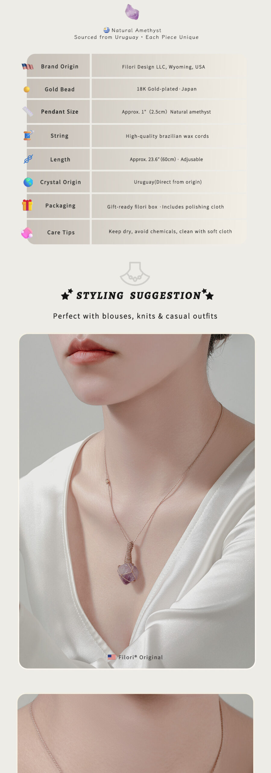 ✧ Material:100% Natural Raw Crystals (size varies slightly) ✧ Accent Beads: Premium 18K Gold-Plated (Japan) ✧ Cord: Hand-braided, premium Brazilian wax cord ✧ Adjustable Length: Up to 23.6″ (60 cm) with sliding knot ✧ Packaging: Comes with a gift box and polishing cloth
