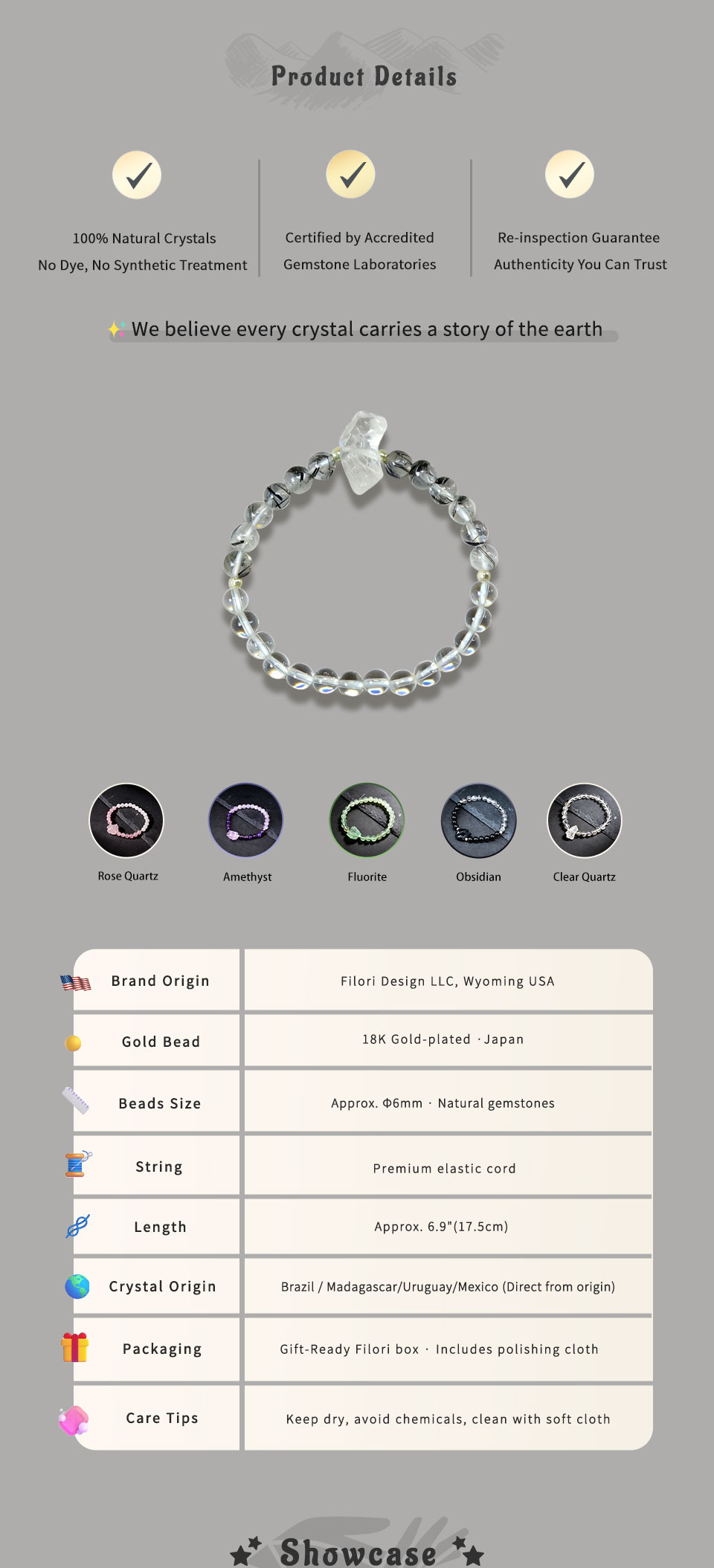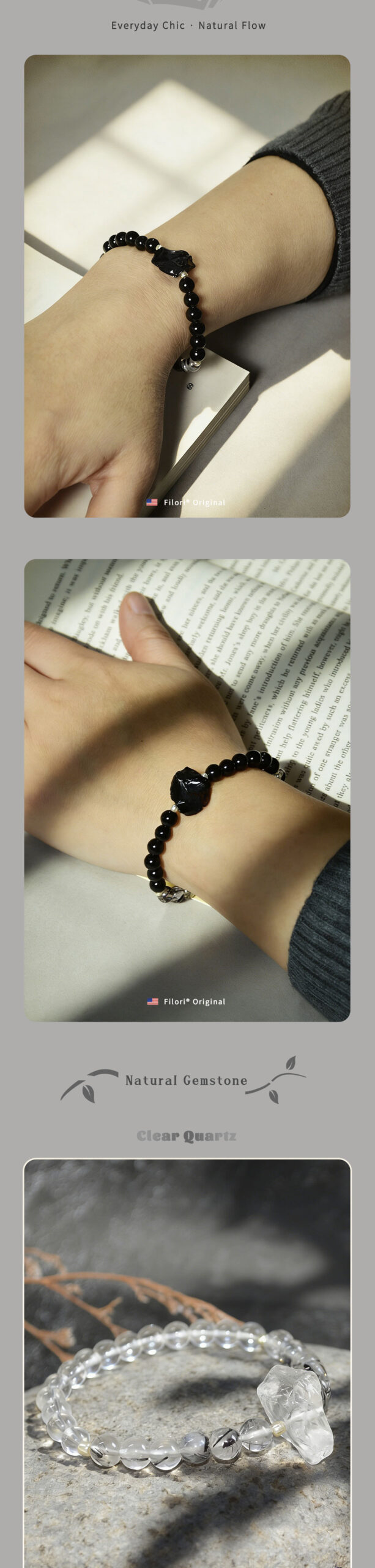 ✧ Material:100% natural, (6 mm round beads & raw quartz centerpiece) ✧ Accent Beads:925 sterling silver ✧ Cord: Premium stretch cord, comfortable and durable ✧ Bracelet Size:6.9″ (17.5 cm), fits most wrists ✧ Packaging: Comes with a gift box and energy meaning card